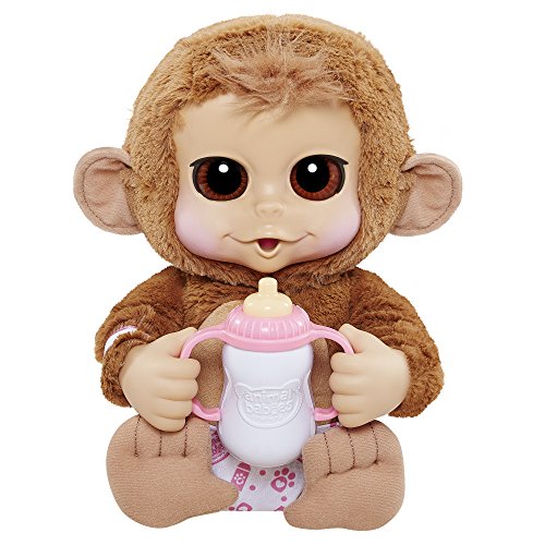 Animal Babies Nursery is the cutest collection of baby animals for kids to name, love and nurture just like a real baby! At approximately 14-Inch in height with soft fur and cuddly bodies, Deluxe Animal Babies make the perfect snuggly companion and even surprise you with silly baby sounds! Press belly to hear them Giggle, Burp, Toot, and Sigh! Specially designed hands allow babies to really suck their thumbs, hold their bottle and even hold hands with all other Animal Babies Nursery animals. Each baby also features hospital band on its arm so you can give it a name and make it yours to love forever! Includes 3 pieces! 1. Animal Babies Nursery 14-Inch Baby 2. Bottle 3. Removable DiaperFeature