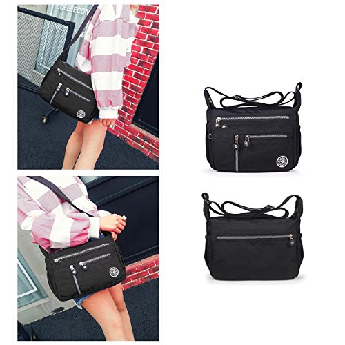 -. Feature : Waterproof oxford fabric &classic hardware. / 4*front zipper pockets, 1*back zipper pocket, 2*side open pockets organize most of your daily necessities. / Long-lasting fashion, nice handbag, travel bag, shoulder bag or cross-body bag. / High-quality Oxford fabric with fabric lining, sturdy, durable and waterproof.