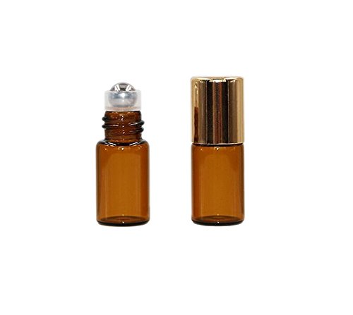 Mini 10 Packs Amber Glass Metal Roller ball Bottles 2.5ml New Essential Oil Roll ON Bottles Perfumes Lip Balm Roller Glass Bottles Cosmetic Sample Container Bottles (gold cap)