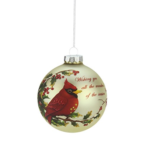 Northlight Red cardinal "Wishing You All The Wonders of The Season" Glass Ball Christmas Ornament, 3.5"