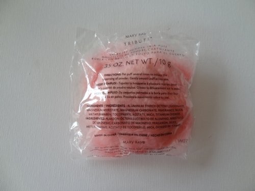 -. Binding : Misc. -. Brand : Mary Kay Beauty & Cosmetics -. Color : Pink -. EAN : 0012431006131 -. Feature : Be sure to check out our other great gifts for the holiday season! -. Label : Mary Kay -. Manufacturer : Mary Kay -. Model : TPP -. MPN : TPP -. NumberOfItems : 10 -. PackageQuantity : 1 -. PartNumber : TPP -. ProductGroup : Beauty -. ProductTypeName : BEAUTY -. Publisher : Mary Kay -. Studio : Mary Kay -. Title : Mary Kay Tribute Shimmery Powder in a Puff ~ New & Sealed -. UPC : 012431006131