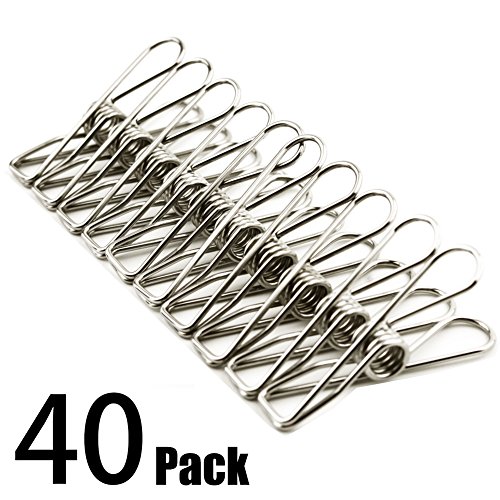 Clothes pins 40 PACK,2 Inch Multi-purpose Stainless Steel Wire ,Cord Clothes Pins Utility Clips,Hooks for Home/Office