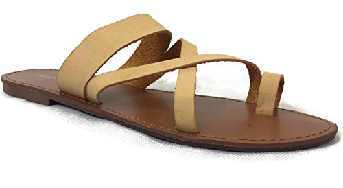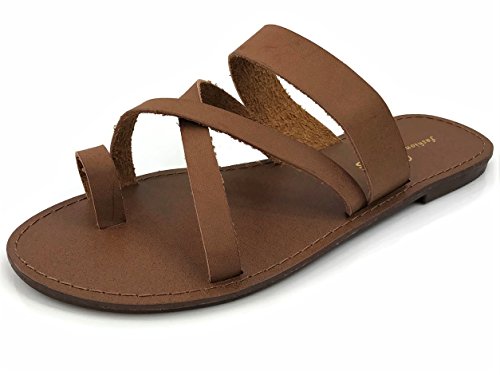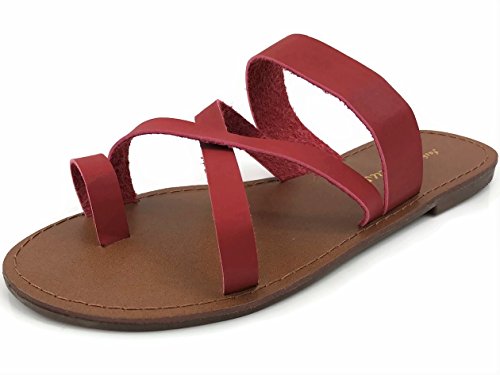 Product Description Toe Ring Sandal Featuring Quality Faux Leather Criss Cross straps and easy slip on style. Very comfortable flip flop sandal. Comfy for beach wear and great fashion statement for your Summer waredrobe. 0