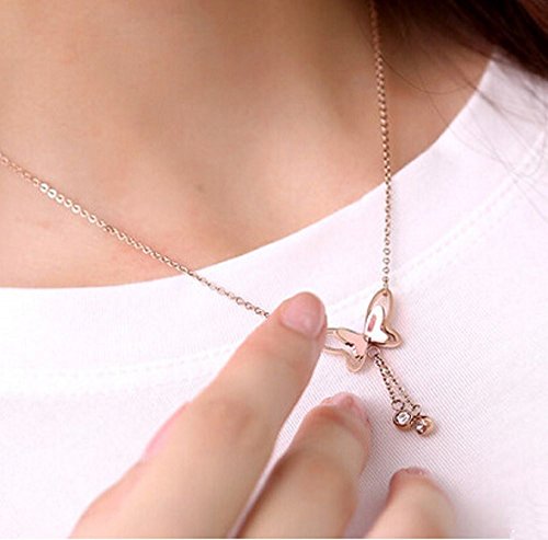 -. Title : [ミャオミャオ] Miaomyao 蝶 ちょうちょ バタフライ ステンレス 製 ネックレス ペンダント ピンクゴールド レディース ジュエリー ボックス セット
