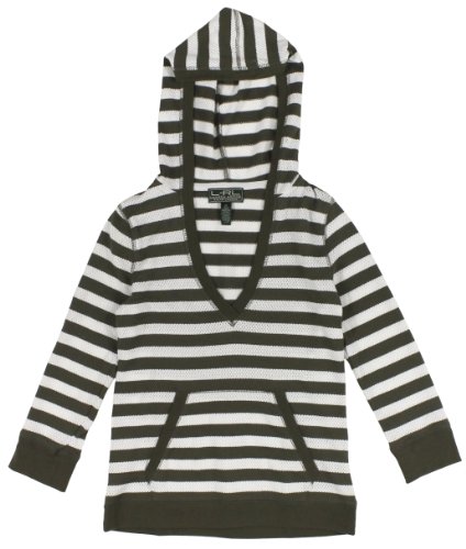 Allover waffled stripe construction Ribbed v-neckline; Hooded silhouette Three-quarter length sleeves with ribbed cuffs Kangaroo pocket Ribbed hem; Pullover styling Brand : RALPH LAUREN EAN : 0886765794077 Product Dimensions(LxWxH) :