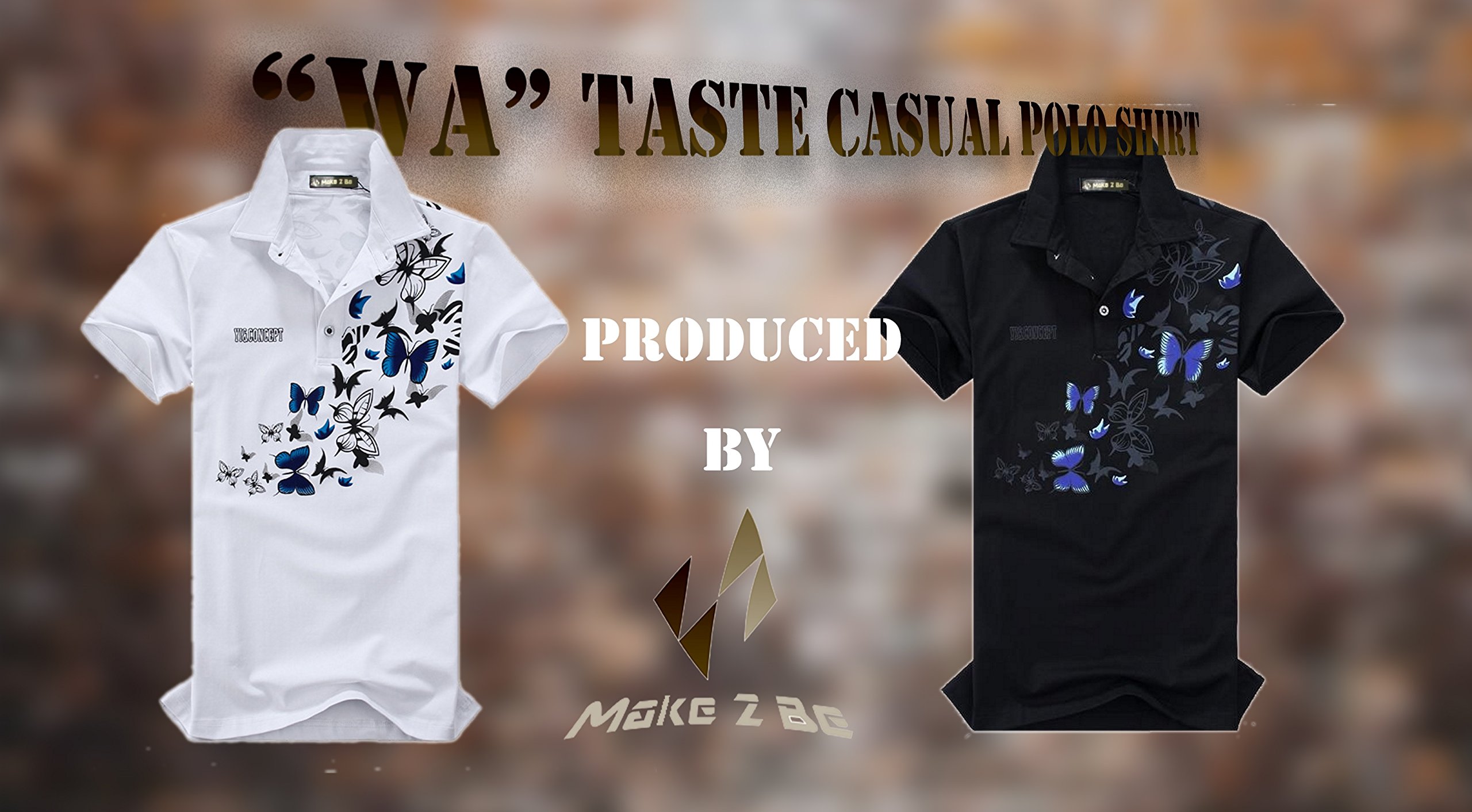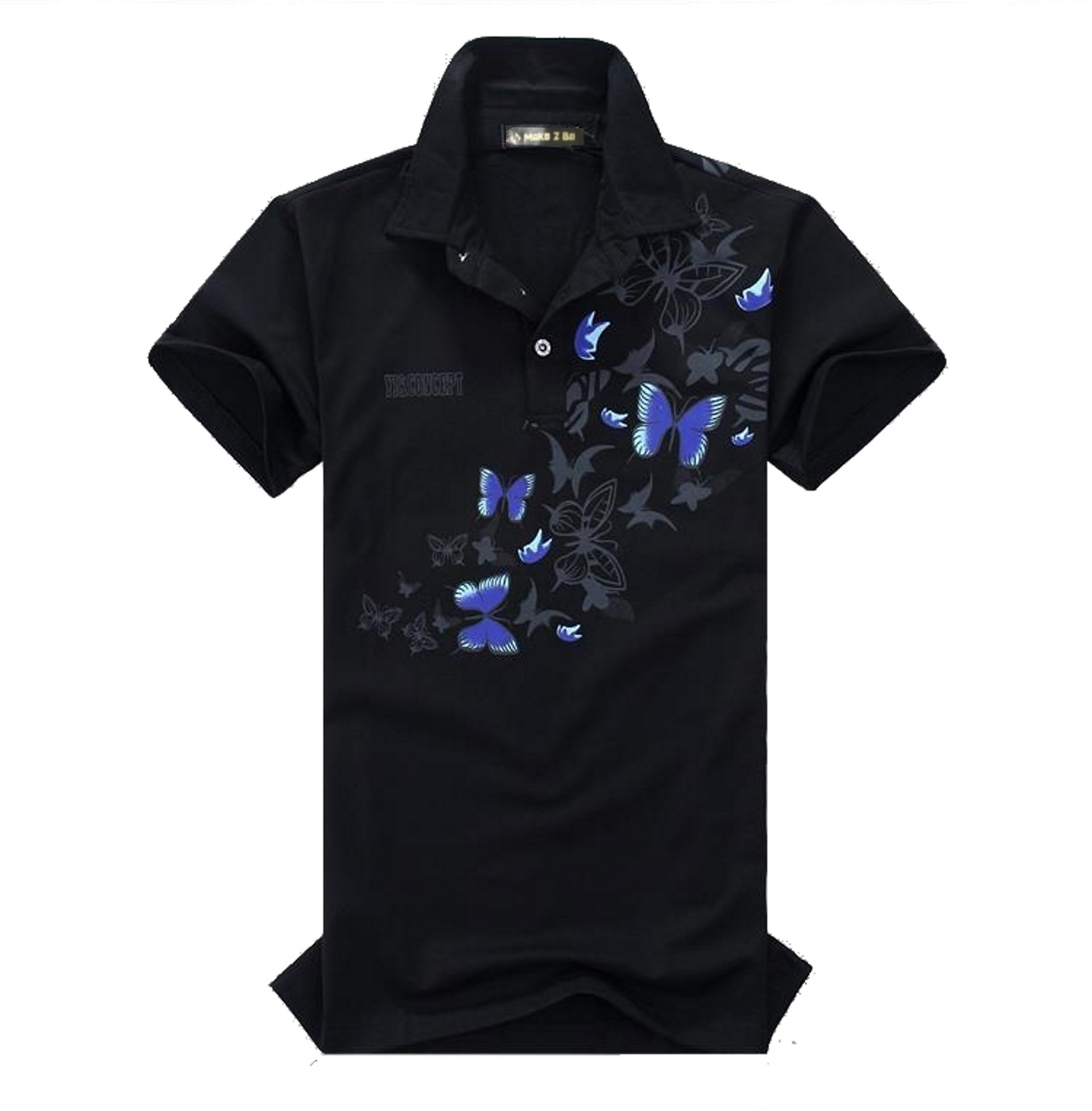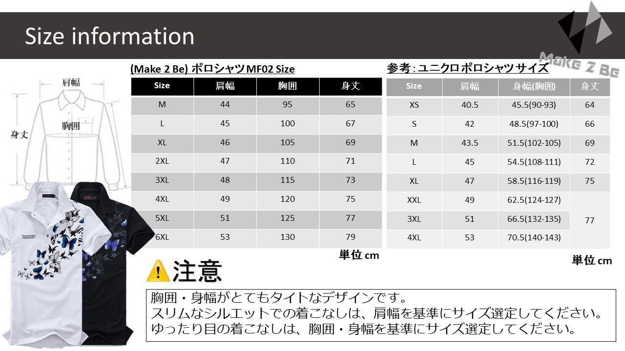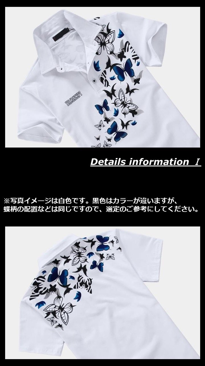(Make To Be) Make 2 Be Men's Butterfly Pattern Rambai Polo Shirt Japanese Pattern Short Sleeve Casual Shirt Golf Wear Butterfly MF 02