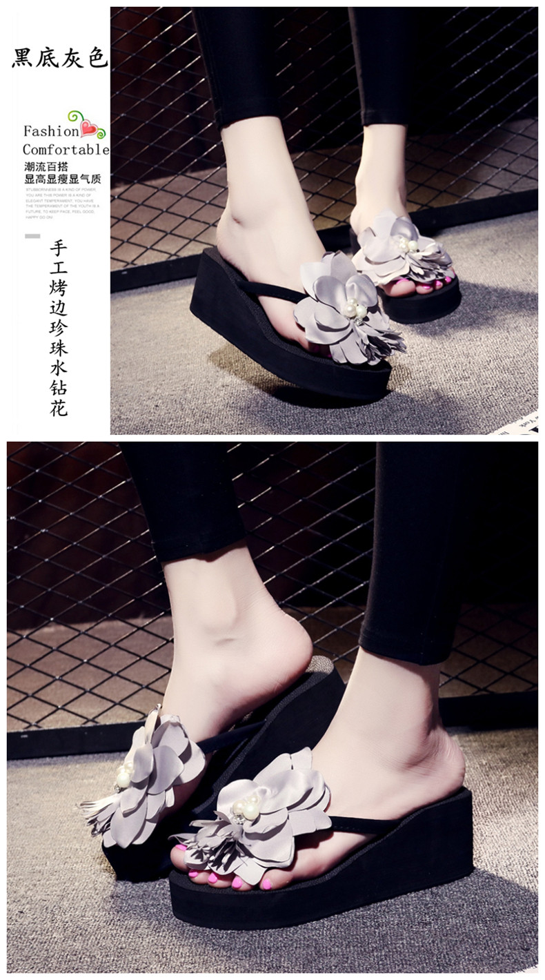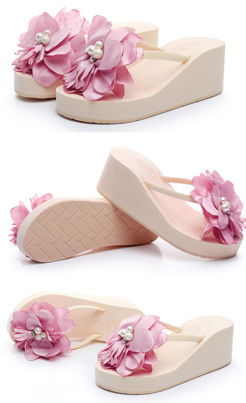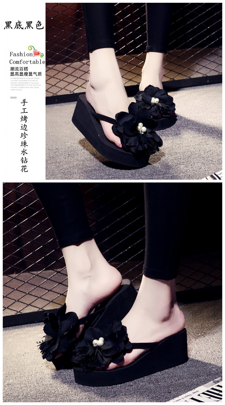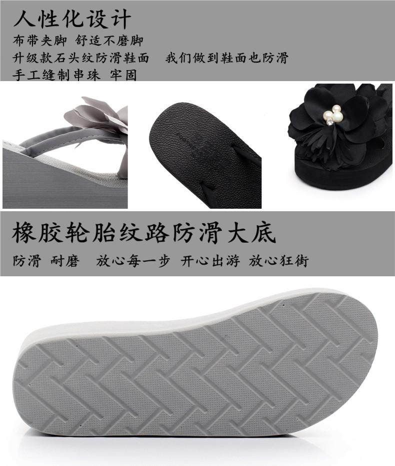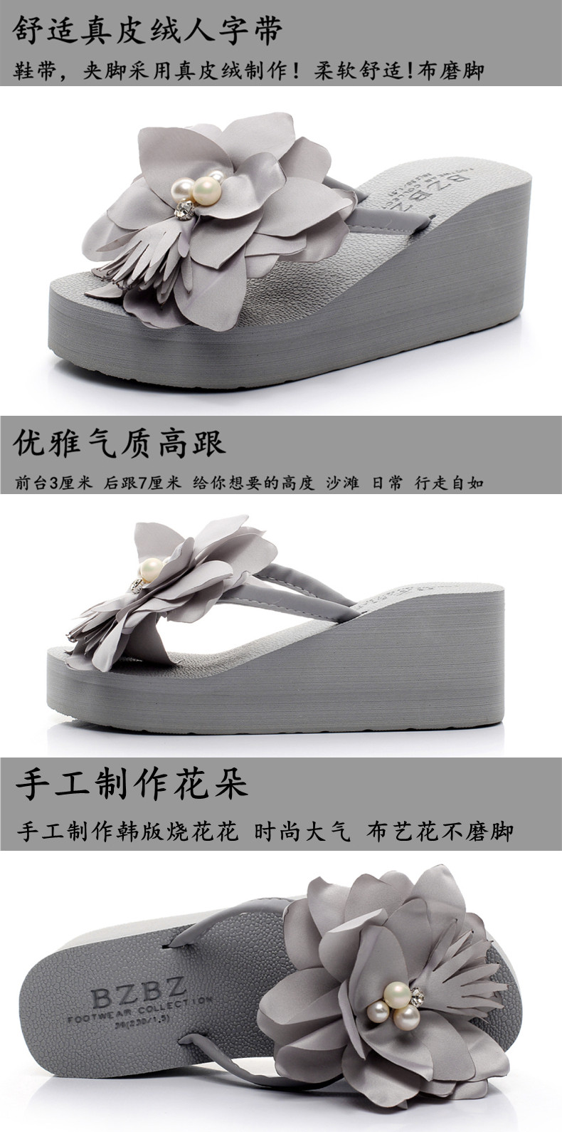 韩版时尚花朵沙滩鞋外穿高跟人字拖坡跟厚底防滑夹脚凉拖鞋女夏季