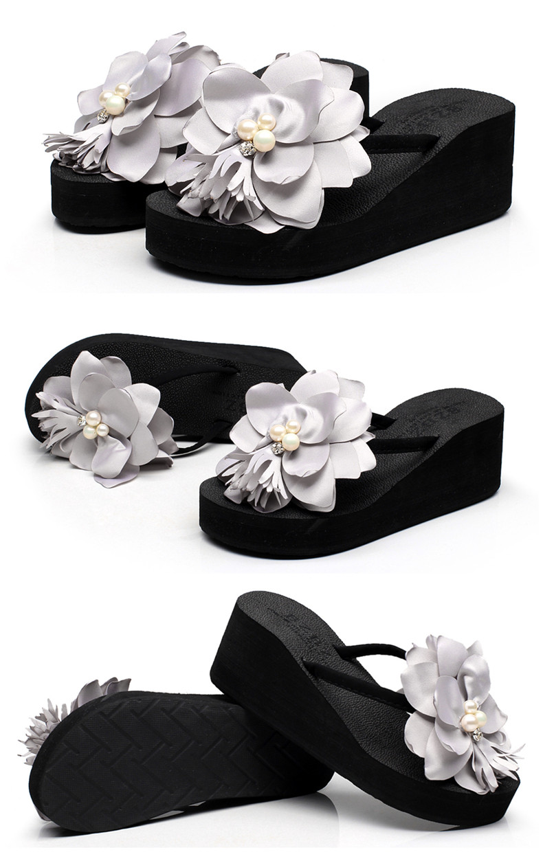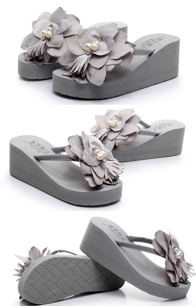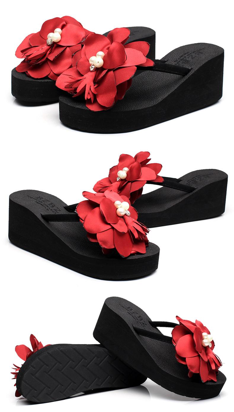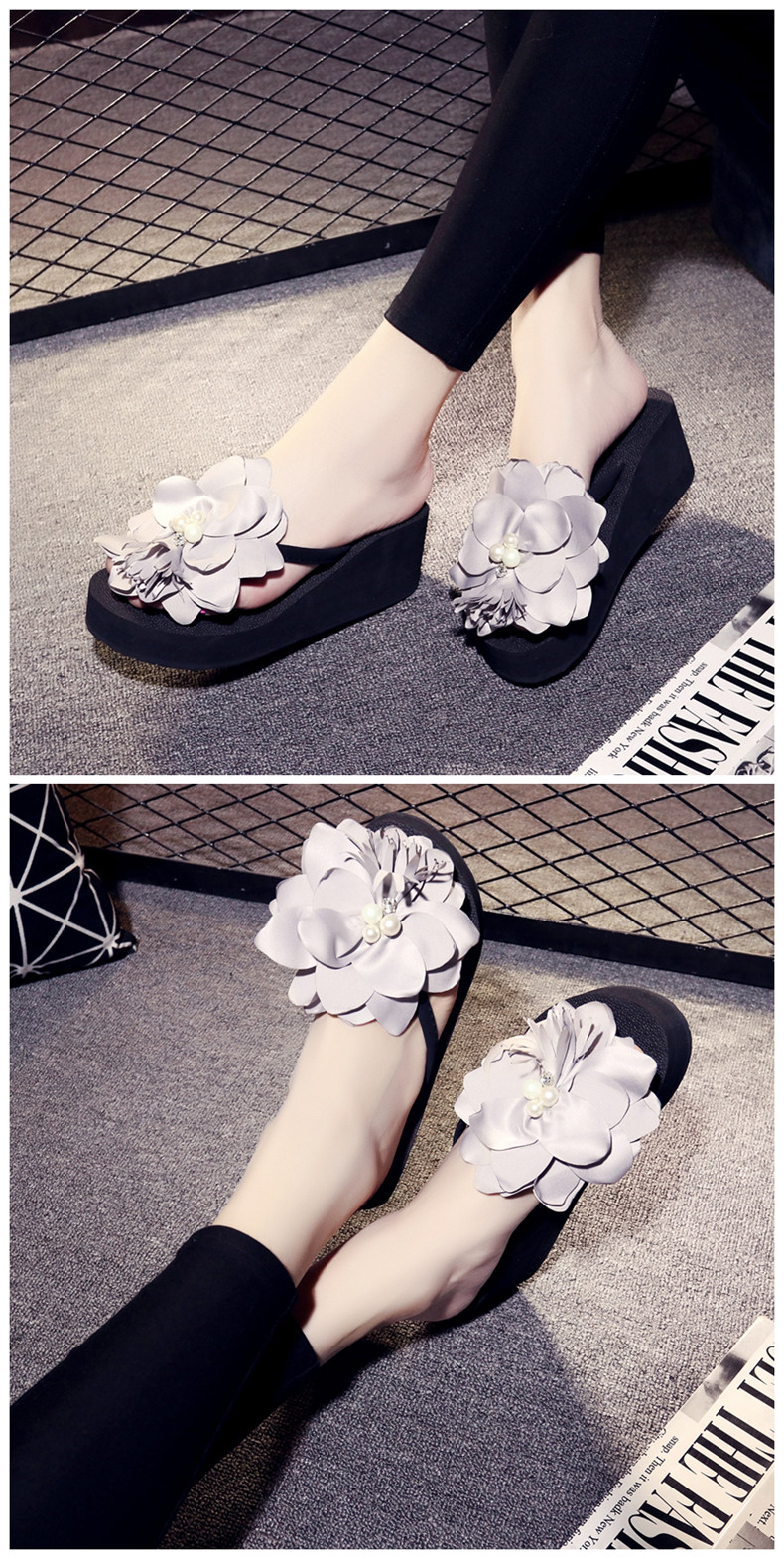 韩版时尚花朵沙滩鞋外穿高跟人字拖坡跟厚底防滑夹脚凉拖鞋女夏季