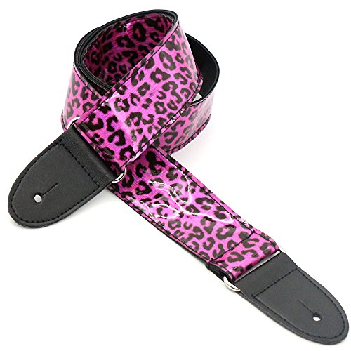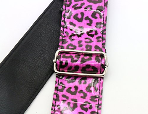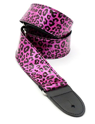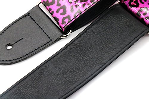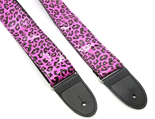 Bright Leopard Print Adjustable Leather Guitar Strap (Electric Guitar, Bass, Folk Guitar available) (Bright Pink)