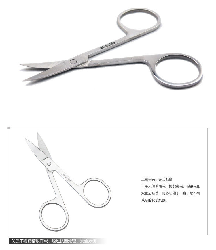 塑料柄碳钢弯头化妆剪(全长9.4厘米)