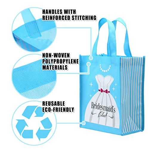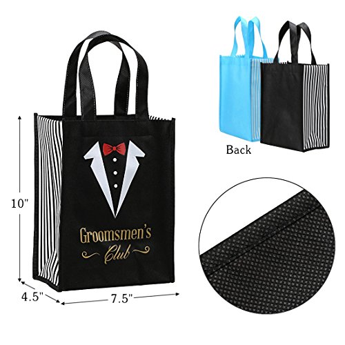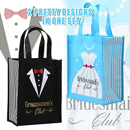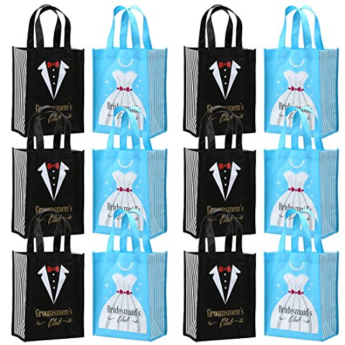 Avery Barn 12 Pc Wedding Party Gift Bags Assortment w/ 6 Bridesmaid & 6 Groomsmen Designs - Ecofriendly Reusable Totes for Bridal Party Shower Thank You - Black / Blue Colors - Tuxedo & Dress Set