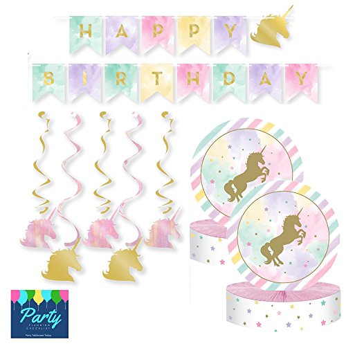 -. Feature : Unicorn Pink & Gold Metallic Party Supplies - Decor Set includes: / (2) 12" x 9" centerpiece / (5) Assorted Dizzy Danglers - (2) 39 inch and (3) 30 inch / (1) Shaped "Happy Birthday" Banner / You'll also receive a unique FAKKOS Design Party Planning Checklist to help get your party organized so you can enjoy the party too!