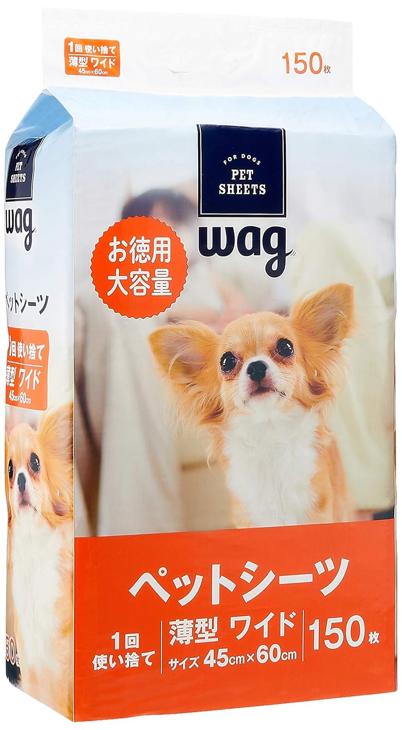 薄型 ワイド 150枚 1回使い捨てタイプ※小型犬1回分約30cc 原産国:中国 サイズ (1枚あたり 幅X奥行X高さ) :45×60×0.1cm 重量 (1枚あたり) :約22g サイズ (1袋あたり 幅X奥行X高さ) :35×12×45cm 重量 (1袋あたり) :3.3kg