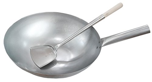 14" Hong Kong (Cantonese) style round bottom wok with a wok spatula (shovel).