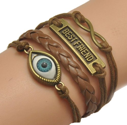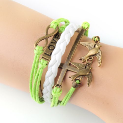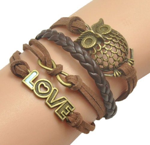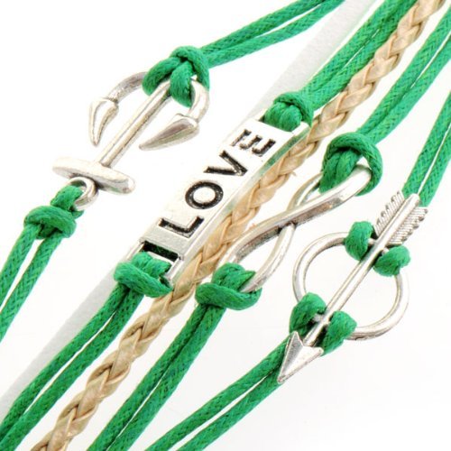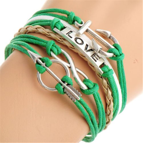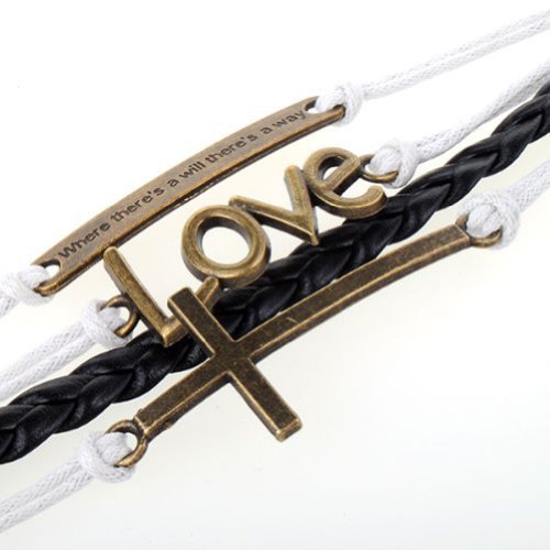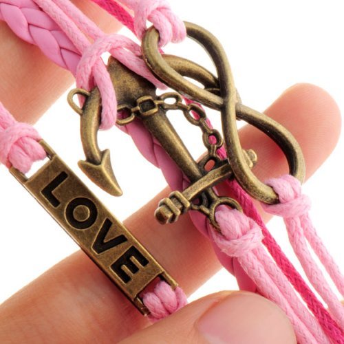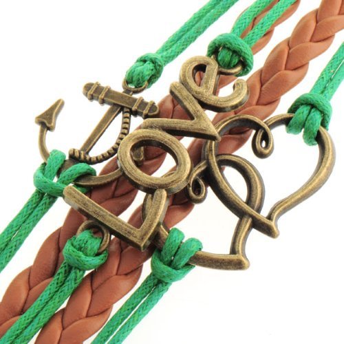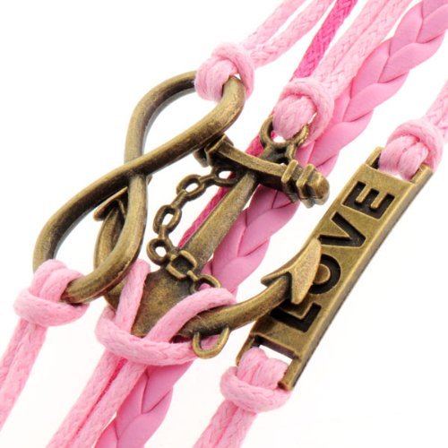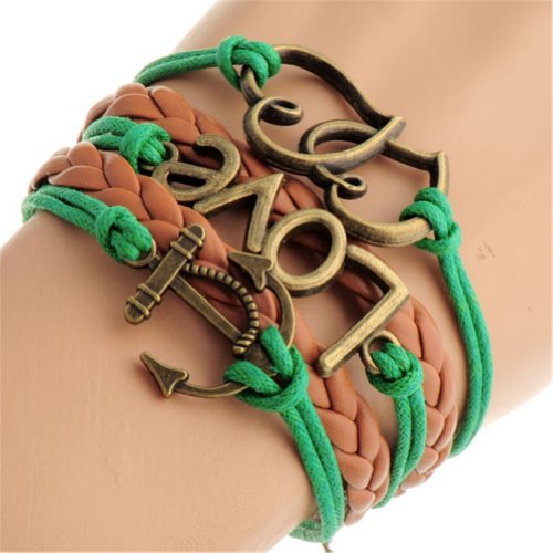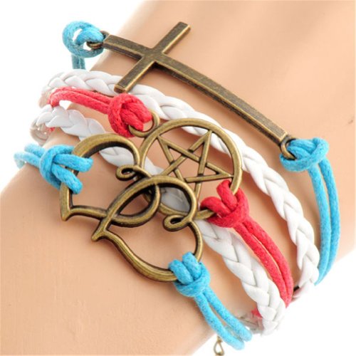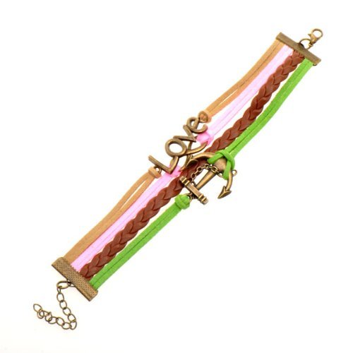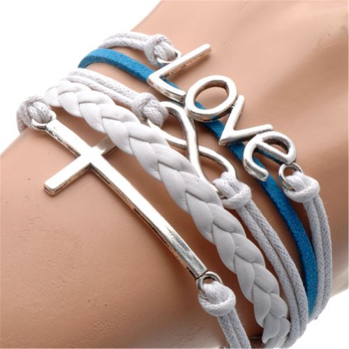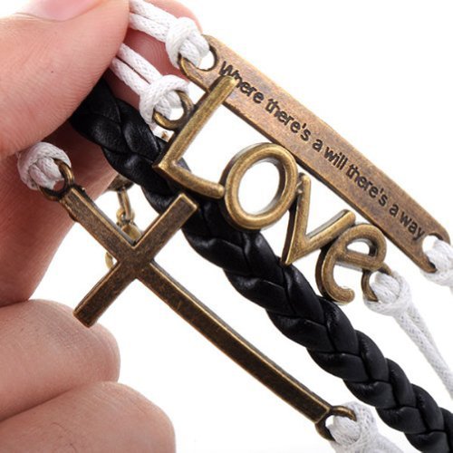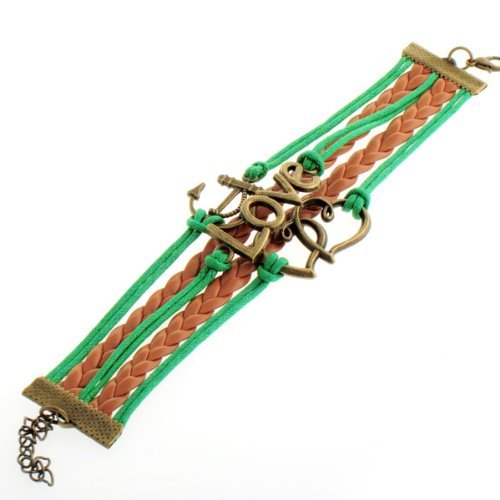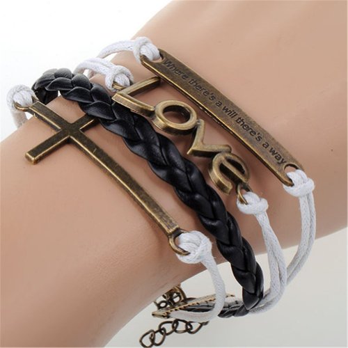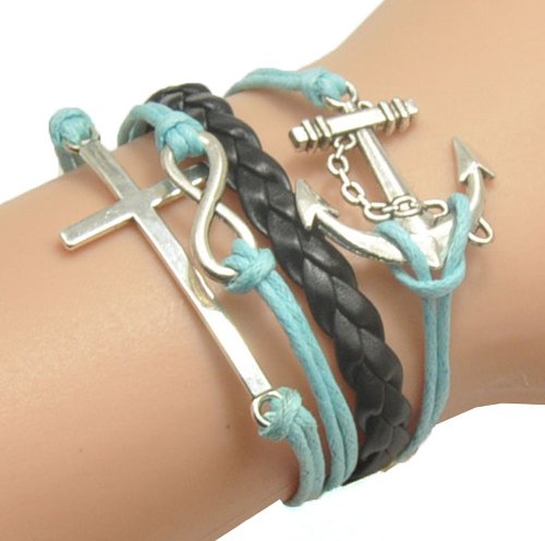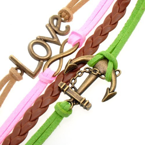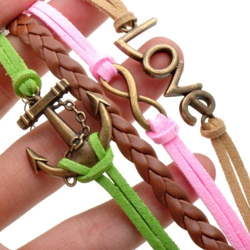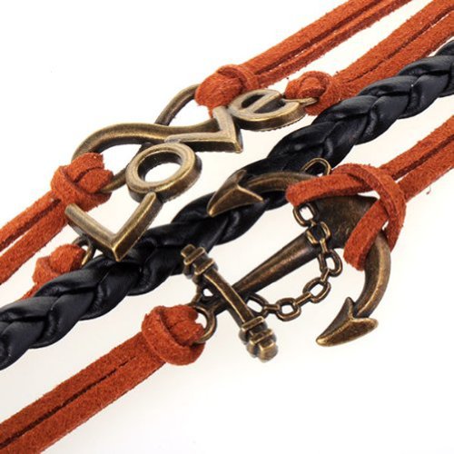 - Title : HUMASOL Bronze Infinity Lady Retro Knit Cross Love/Rudder Anchor/Love Charms Suede Wrap Bracelet Gift