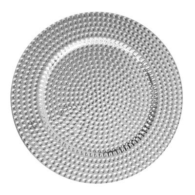 Studio : ChargeIt by Jay Publisher : ChargeIt by Jay Binding : Kitchen Product Description Elevate your presentations with this Round Beaded Charger Plate. Featuring sophisticated styling and ornate detailing, this charger plate makes the ideal addition to high-class affairs, receptions, and other fanciful catered events. Its lightweight, durable construction carries well and the rustic coloring adds an air of antiquity to your table settings. 0