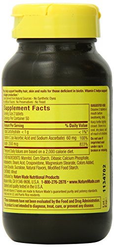 Nature Made VitaMelts Fast Dissolve Hair Skin & Nails (Biotin 2500 mcg + Vitamin C 60 mg) 100ct