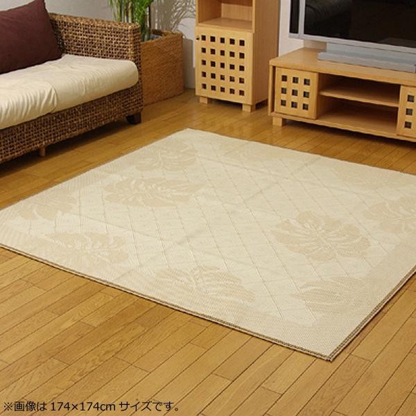 麻の一種であるジュート糸と、ポリエチレン糸のジャガード織のカーペットです。裏面にはフローリングを傷つけにくいよう不織布を貼っています。 |