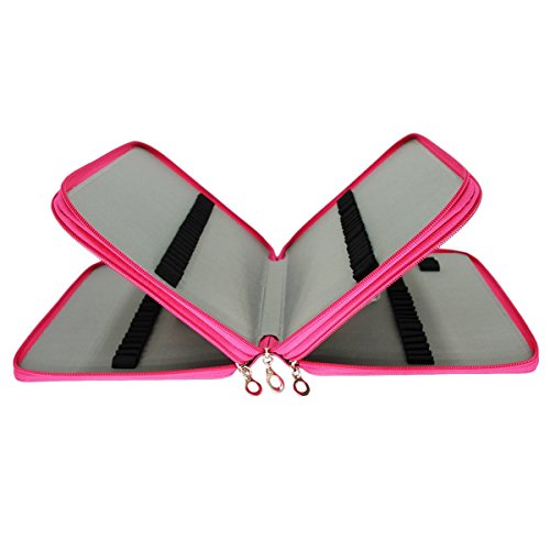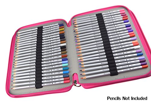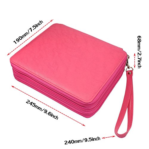 Corasays 120 Slots 127 Slots Super Large Capacity Handy Deluxe PU Pencil Wrap Pencil Holder Pen Bag Makeup Cosmetic Case Bag with Zipper (Deep Pink)
