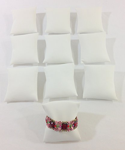 Bejeweled Display® 10Pc Black Velvet Pillow Bracelet, Watch, Bangle Jewelry Display Stand Set (White Leatherette)
