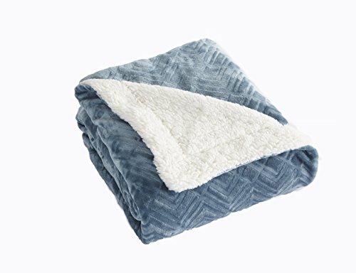 Premium Reversible Berber and Sculpted Velvet Plush Luxury Blanket. High-End, Soft, Warm and Silky Bed Blanket. By Home Fashion Designs Brand. (Full / Queen, Blue Surf)