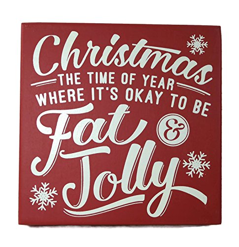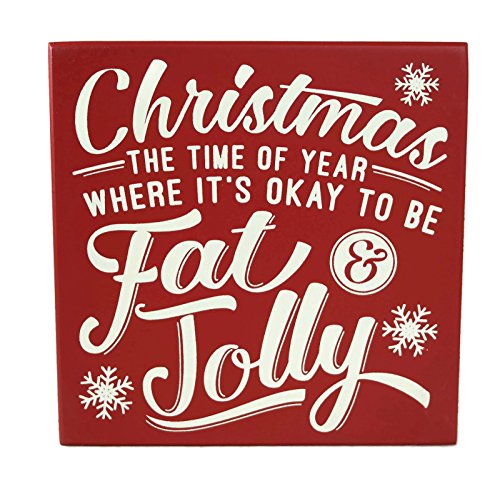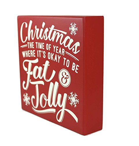 Collins Christmas The Time Okay to Be Fat and Jolly Red White Decorative Box Wood Sign