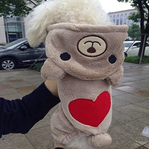 -. Binding : Misc. -. Brand : Gilroy -. Feature : Soft and warm coral fleece material, suitable for winter wearing. Bear style with big red heart pattern, chic and lovely. / Elastic legs and hooded design. With this clothes, your doggy will instantly look dynamic. / Make your pet fashionable and pretty in any occasions. Easy to wear and take off. / Material: Coral Fleece / This is Label Size(Asian/China size)about 2/3 sizes smaller than US AU EU size! Please, make sure of these actual measurements will fit you! -. MPN : 18133452344755 -. PackageQuantity : 1 -. PartNumber : 18133452344755 -. ProductGroup : Pet Products -. ProductTypeName : PET_SUPPLIES -. Title : Gilroy Pet Puppy Dog Cat Heart Bear Hoodie Winter Warm Clothes Jumpsuit Coat