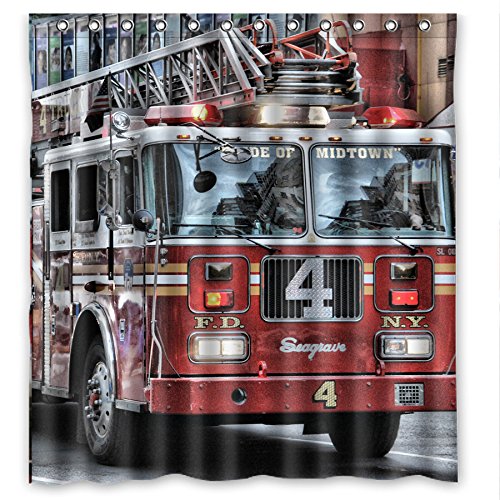Cool Fire Fighting Truck Waterproof Bathroom Shower Curtain - 100% Polyester Mildew Proof Bath Curtain - 60"(W)x72"(L)