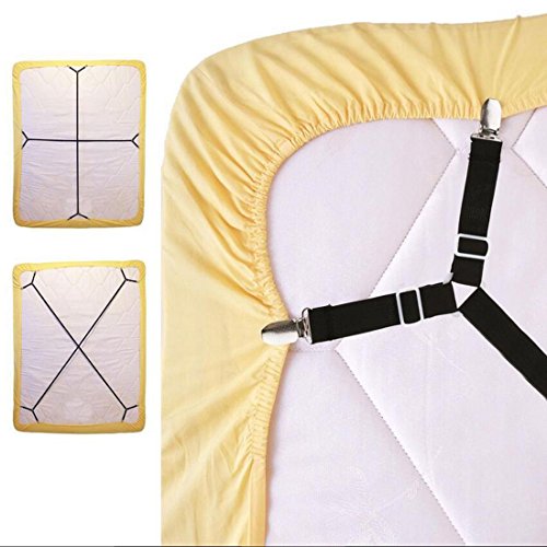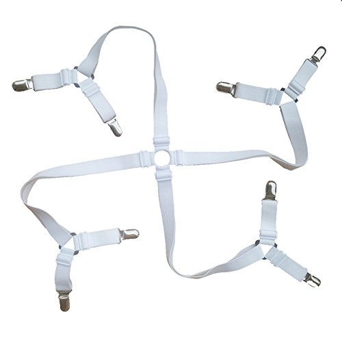 Toweter 3-Way Adjustable Elastic Under Mattress Bed/Fitted Sheet Fastener,Crisscross Bed Sheet Straps Suspenders,Slipcover Fastener(White)
