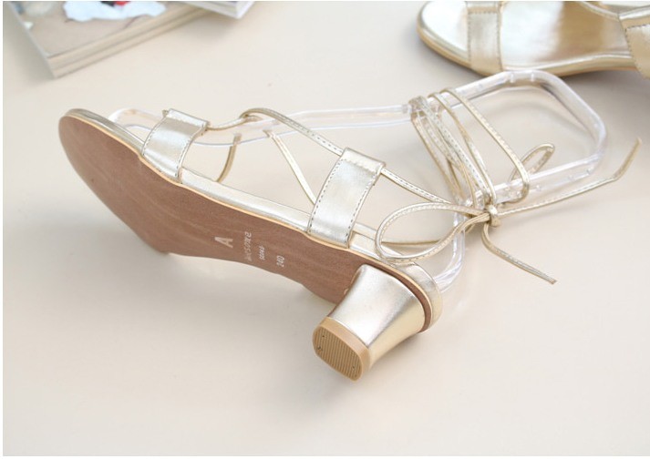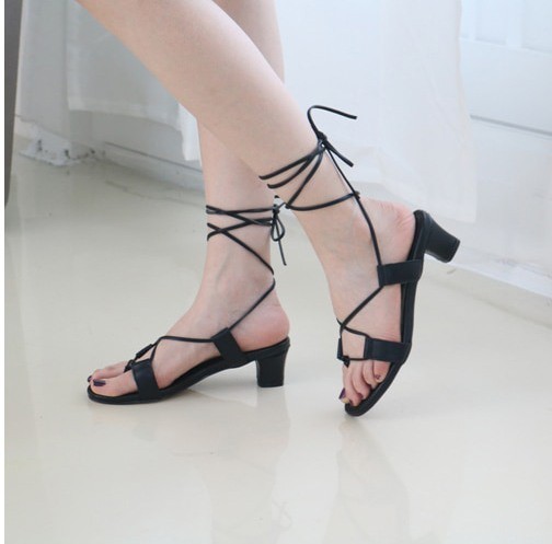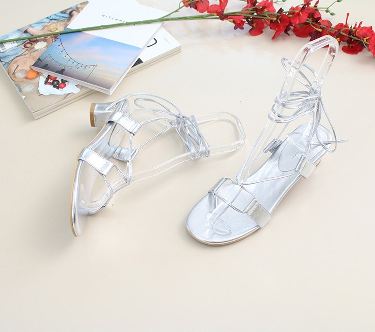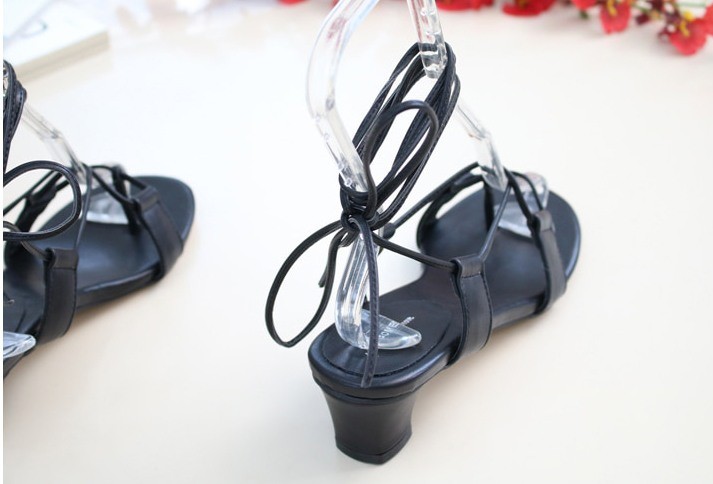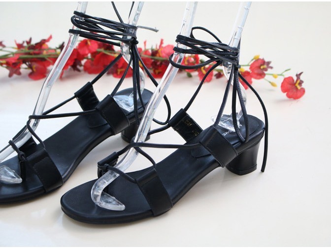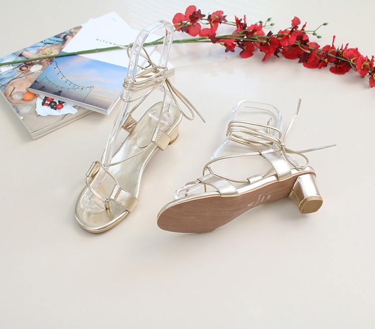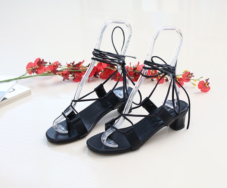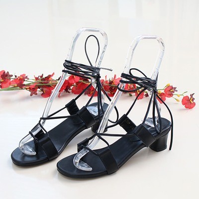 商品名:サンダル レディース レースアップ 太ヒール チャンキーヒール 2018 夏 ファッション 靴 婦人靴