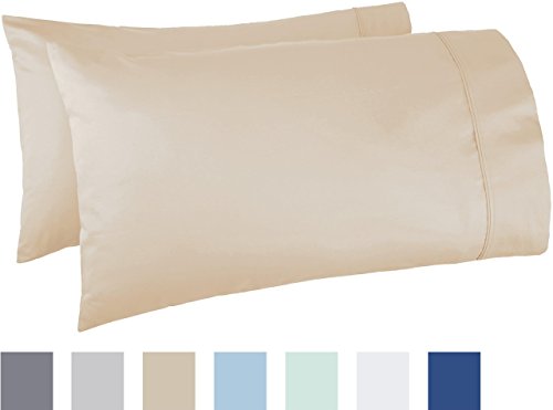AmazonBasics 400 Thread Count Pillow Cases - Standard, Set of 2, Beige