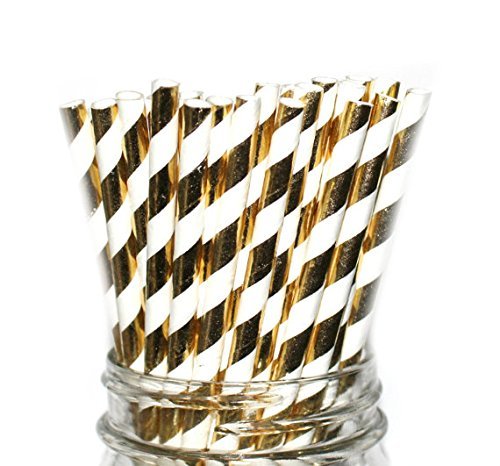 Foil Gold Stripes Paper Straws- Party Disposable Straws (100 Straws)