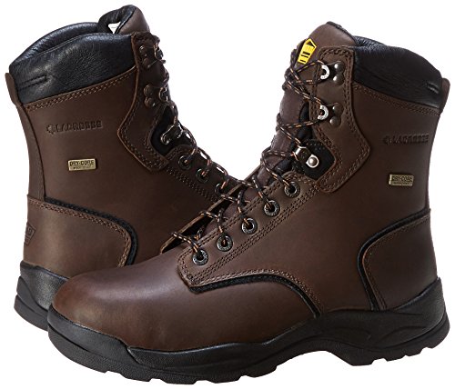 Studio : LaCrosse Publisher : LaCrosse Binding : Apparel Product Description Four layers of cushioning and a Dry-Core barrier provide comfortable waterproof protection. The 483011 LaCrosse Men's Quad Comfort 4X8 INS Safety Boots have an extra wide padded collar. The Quad Comfort Technology featuring four layers of cushioning and support where needed. The 400 Grams of Thinsulate™ Ultra insulation will keep your feet dry. The outsole is oil and slip resistant.8" Full Grain Leather and Rugged NylonWaterproof Dry-Core LiningPadded Collar 400 Grams of Thinsulate™ Ultra insulationQuad Comfort Technology Featuring Four Layers Of Cushioning And SupportNylon ShankQuad Outsole Featuring Oil And Slip Resistant TractionSteel Toe Rated ASTM F2413-11 M I/75 C/75Electrical Hazard 483011 LaCrosse Men's Quad Comfort 4X8 INS Safety Boots - Brown 0