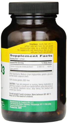 -. Binding : Health and Beauty -. Brand : Country Life -. Color : Parent -. IsAdultProduct : 0 -. Label : COUNTRY LIFE -. Manufacturer : COUNTRY LIFE -. PackageQuantity : 1 -. ProductGroup : Health and Beauty -. ProductTypeName : HEALTH_PERSONAL_CARE -. Publisher : COUNTRY LIFE -. Studio : COUNTRY LIFE -. Title : Country Life - Vitamin D3 2500 IU