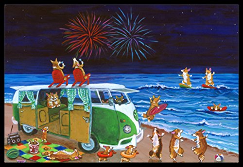 Caroline's Treasures 7317JMAT Corgi Beach Party Volkswagon Bus Fireworks Indoor or Outdoor Mat, 24 x 36", Multicolor