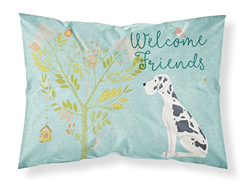 Caroline's Treasures Welcome Friends Harlequin Great Dane Pillowcase, Standard, Multicolor