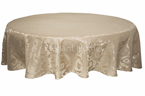 -. Title : Elegant Home Light Brown Taupe Tan Floral Jacquard Rectangle Tablecloth Heavy Weight Fabric Table Cover for Kitchen Dinning Tabletop Linen Decor