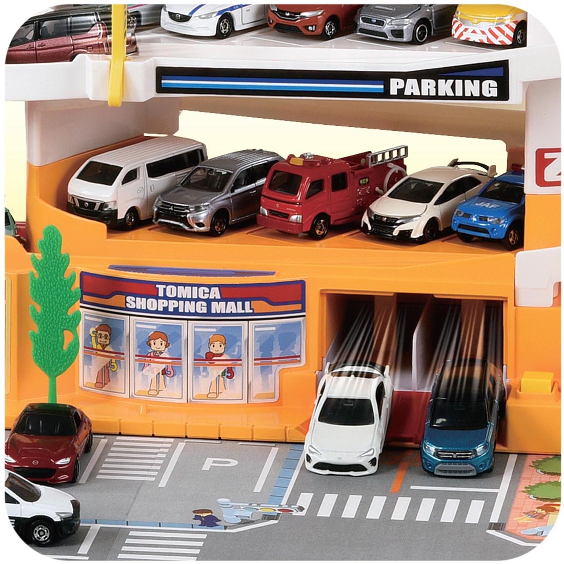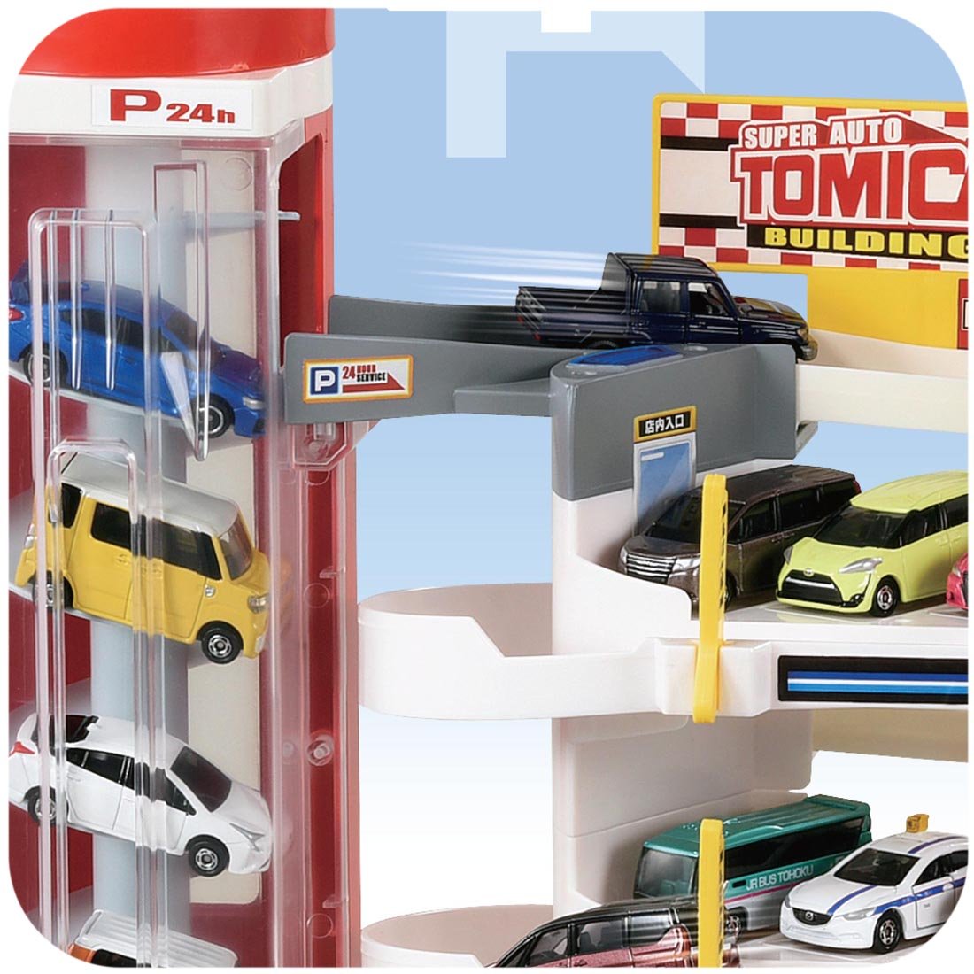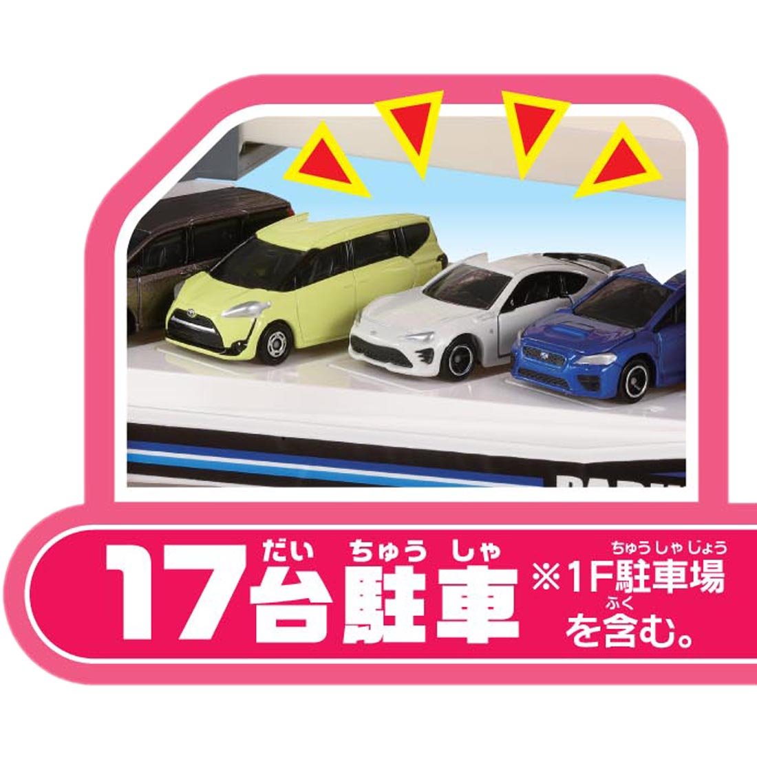 ■ 5 cars on each floor, 2 cars in secret parking lot A total of 17 Tomica vehicles can be parked and the parking ability is outstanding!
