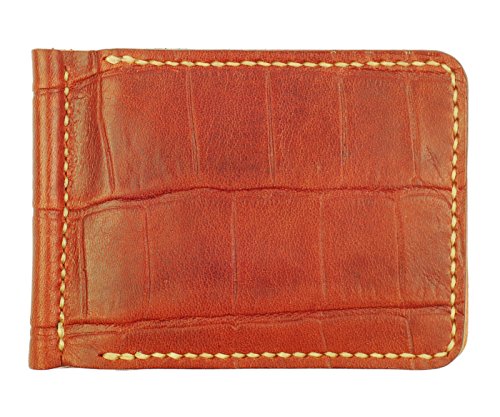 - Title : Leather Money Clip Wallet, Crocodile Grain, Mahogany, Handmade