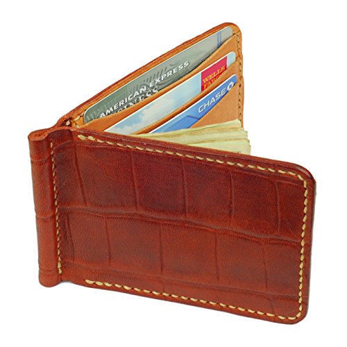 - Feature : 6 Credit card slots, 1 Spring Clip, 2 hidden pockets / Durable, lifetime warranty / Crocodile grain embossed texture / Completely handmade leather wallet / Closed Size: 4 5/8" x 3 3/8" x 3/8"