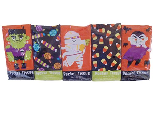 Product Description Our Halloween themed pocket facial tissues are the right size to carry and go. Great on the road, in a pocket, purse or sleeve. The festive designs are colorful and bright. 0