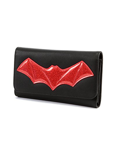 -. Binding : Apparel -. Brand : Lux De Ville -. Color : Matte Black/Venom Red Sparkle -. Department : womens -. Feature : D:7.5" long, 4.5" high closed, 12" high open, 1" wide / Features sexy bat detail with black leopard lining! / Plenty of card holds and places to stash your loot. / Very Limited Edition! -. IsAdultProduct : 0 -. ProductGroup : Apparel -. ProductTypeName : ACCESSORY -. Size : Medium -. Title : Lux de Ville After Midnight Bat Wallet Matte Black Venom Red Sparkle
