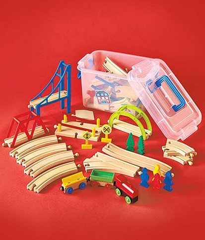 -. Binding : Toy -. Brand : Nasco -. EAN : 0603016990725 -. Feature : Encourage your child's imagination as he creates his own railway for the train / This 60 piece set Includes train and track and dozens of props and extras! / Includes Storage and carry case for train track and accessories / wooden track system compatible with most trains / Wood and Plastic track train and Pieces Ideal For ages 3 and up -. IsAdultProduct : 0 -. Label : Wooden -. Manufacturer : Wooden -. PackageQuantity : 1 -. ProductGroup : Toy -. ProductTypeName : TOYS_AND_GAMES -. Publisher : Wooden -. Studio : Wooden -. Title : Wooden Train Track 60 piece set - Wooden Railway Set with toys trains and Accessories. Includes Storage Tub -. UPC : 603016990725