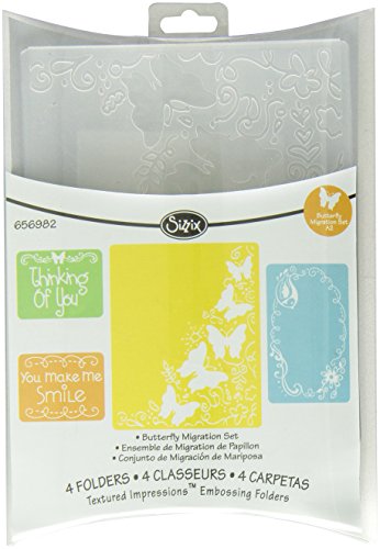 Create a big impression! Textured Impressions Embossing Folders offer the deepest and boldest embossing experience. You can turn ordinary cardstock, paper, metallic foil or vellum into an embossed, textured masterpiece. It contains one large folder, measuring 5 3/4" x 4 1/2" x 1/8", one medium folder, measuring 4 1/2" x 2 7/8" x 1/8", and two small folders, each measuring 2 7/8" x 2 1/4" x 1/8". The large folder also fits the exact dimensions of an A2 card, while medium and small sizes create amazing embellishments. Textured Impressions Embossing Folders are for use with the Texture Boutique, BIGkick, Big Shot and Vagabond machines only (used with a pair of Cutting Pads and the machine's included Platform).Feature