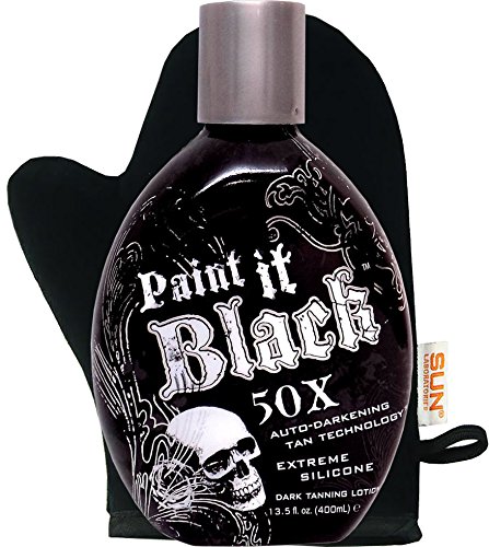 Millennium Tanning Paint It Black 50X,13.5 NEW Unique Auto-Darkening Tan Technology delivers extreme dark bronze tanning results through its super luxurious silicone emulsion blend. Experience stunning dark tan color and ultra moisturization that lasts all day. Accelerating, Bronzing, Skin Firming, Silicone Emulsion Fragrance: Fresh and Clean Cotton Blossom. Suitable for all ages as this product does not contain a tingle!!!