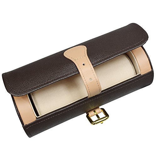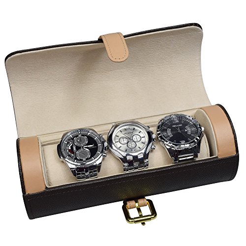 Studio : NILECORP Publisher : NILECORP Binding : Watch Product Description Store up to three large watches or a variety of bracelets in this unique roll-able brown PU leather watch holder with soft beige suede lining and a gold plated buckle. This convenient, portable accessory is perfect as a traveling case for holding your favorite bracelets or watches and the plush cushion protects them from scratches when you're on the go. 0