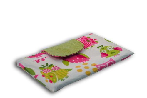 Caught Ya Lookin's Diaper Clutch keeps diapers and wipes handy when you don't feel the need to carry a large diaper bag. For a quick run to the store or just to keep in your diaper bag or purse, this is a must have for all moms. Made with pink and green owls cotton with a shagreen leather flap and pink striped interior. Measures 11" x 7". Made in USA.Feature