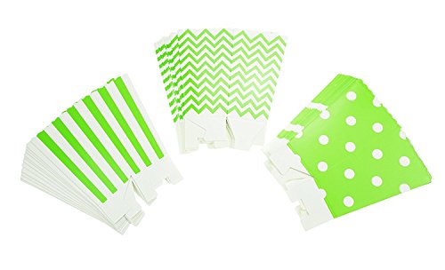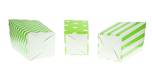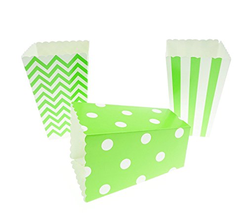 Bilipala Chevron Stripe and Polka Dot Paper Movie Popcorn Favor Boxes, 36 Counts, Green