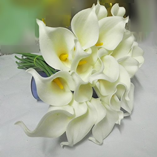 Calcifer 20 head Calla Lily Bridal Latex Real Touch Wedding Bouquet Flower Bouquets White