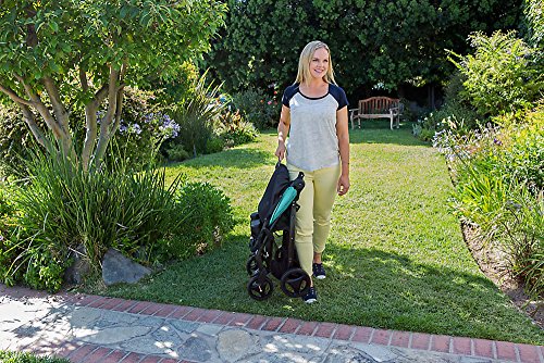 One-hand, self-standing fold closes easily and the carry strap makes it convenient for moms on-the-go